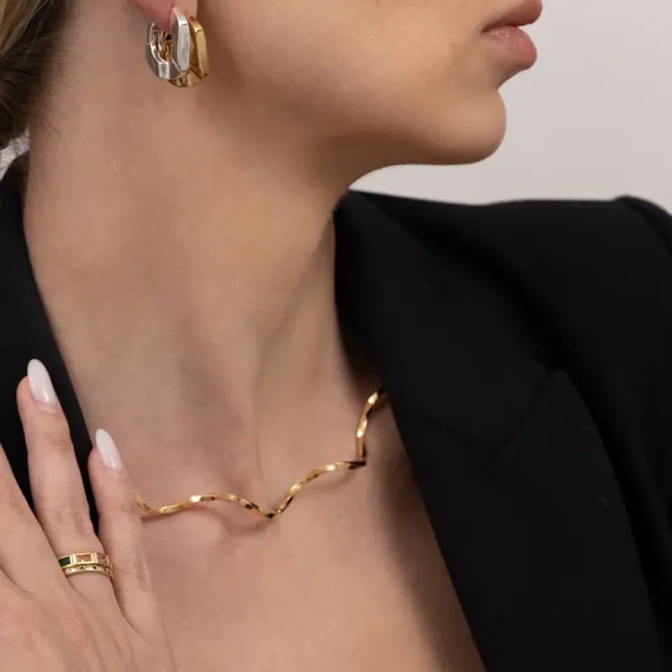 COLAR ARO ONDULADO TORCIDO LISO BANHO OURO 18K
