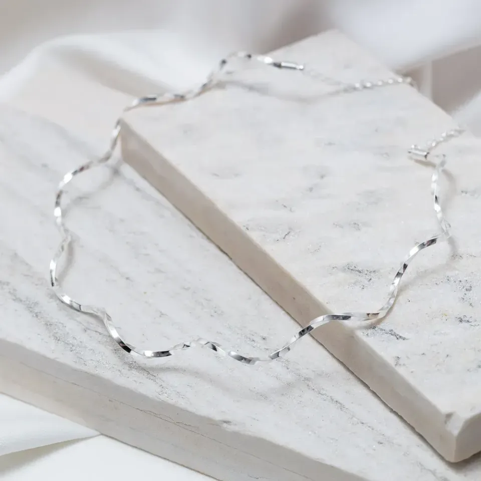 COLAR ARO ONDULADO TORCIDO LISO BANHO PRATA