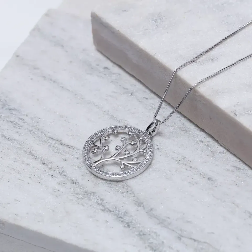 Colar Árvore da Vida Cravejado com Zircônias Cristais em banho Prata