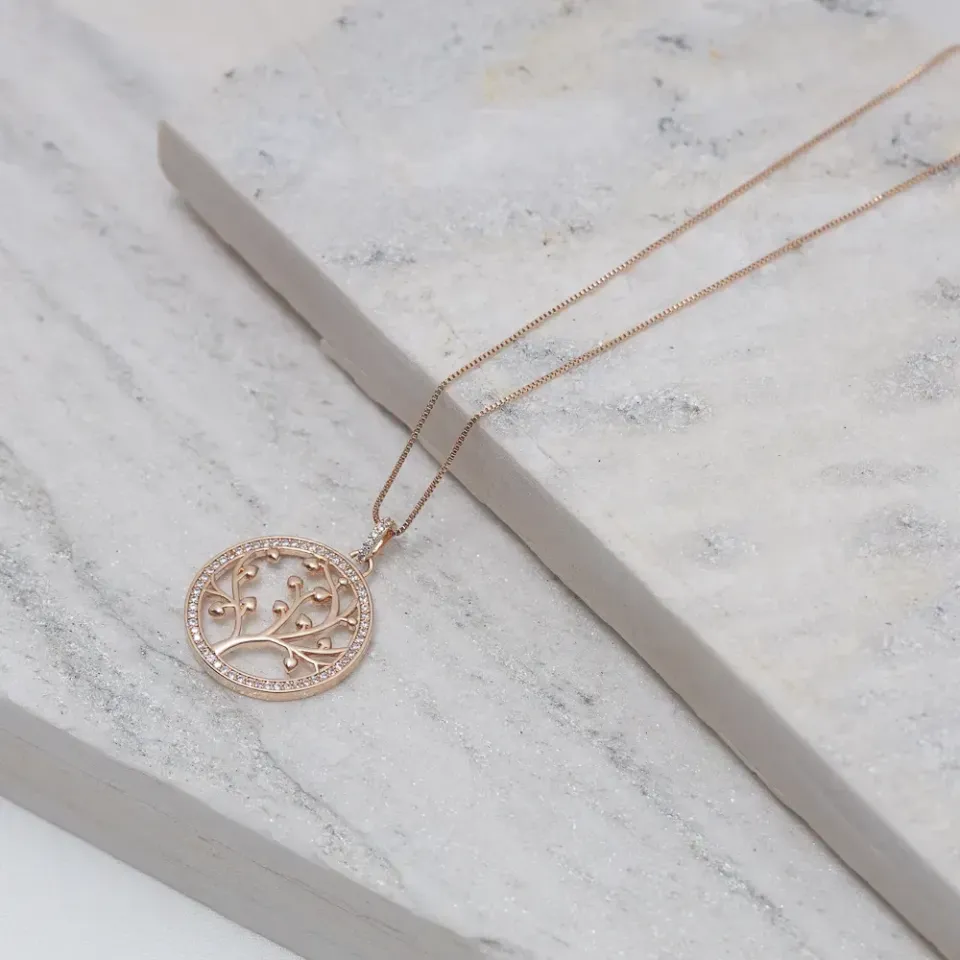 Colar Árvore da Vida Cravejado com Zircônias Cristais em banho Rosé
