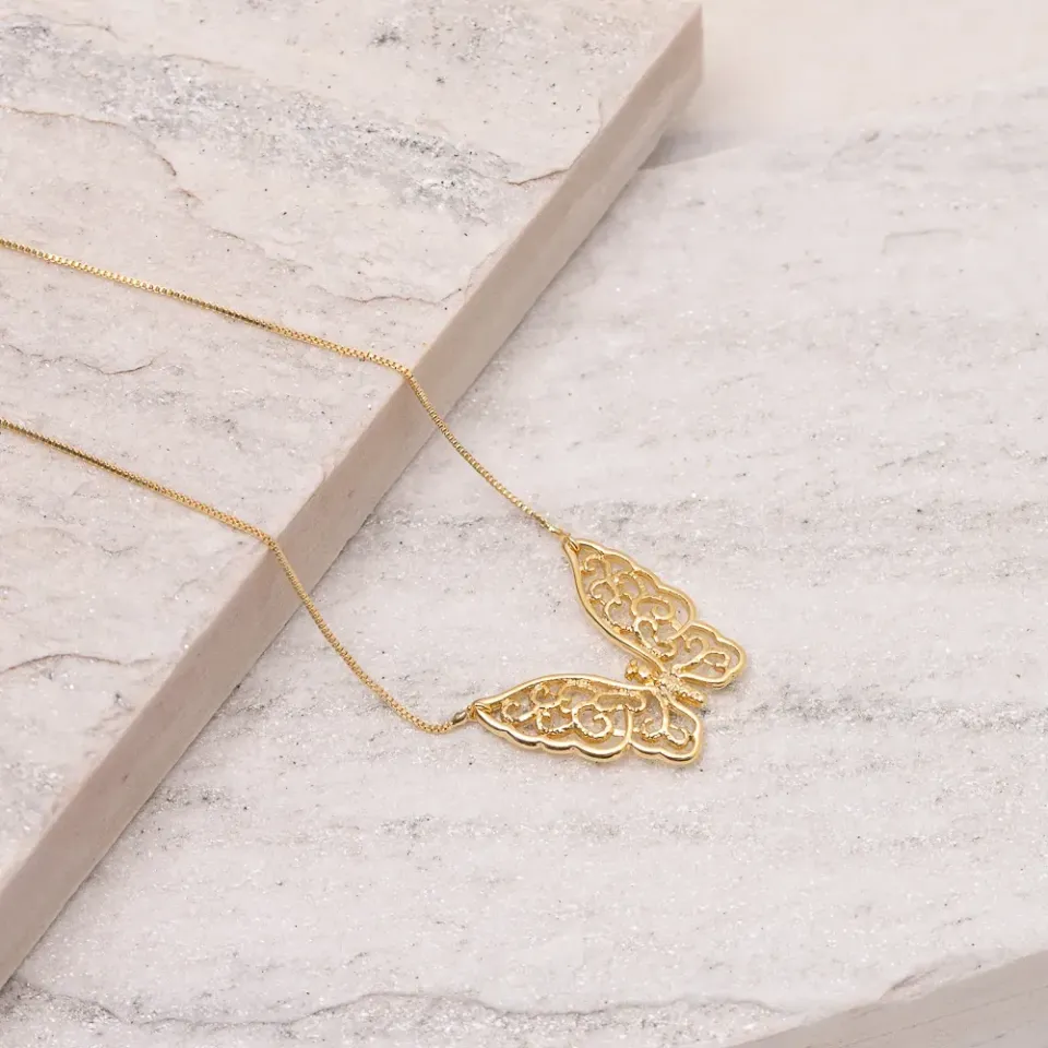 COLAR BORBOLETA VAZADA BANHO OURO 18K