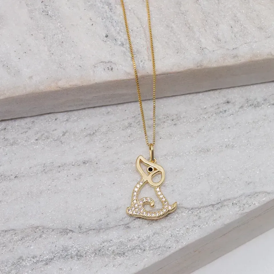 COLAR CACHORRO CRAVEJADO COM ZIRCÔNIAS CRISTAIS BANHO OURO 18K