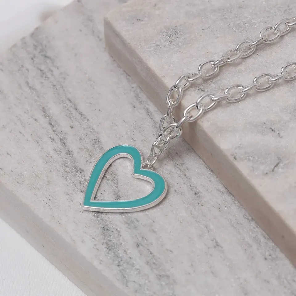 Colar Pingente Coração Esmaltado Verde Tiffany em banho Prata