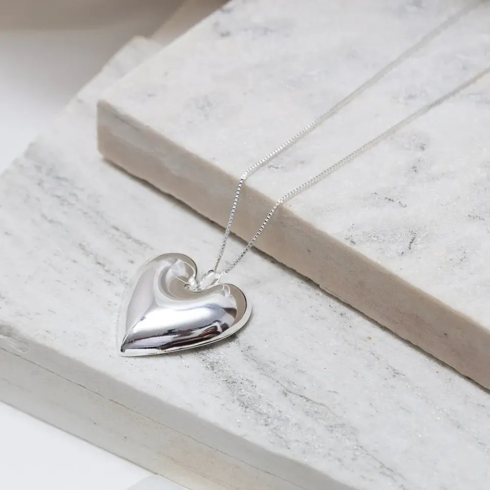Colar Coração Liso Abaulado em banho Prata