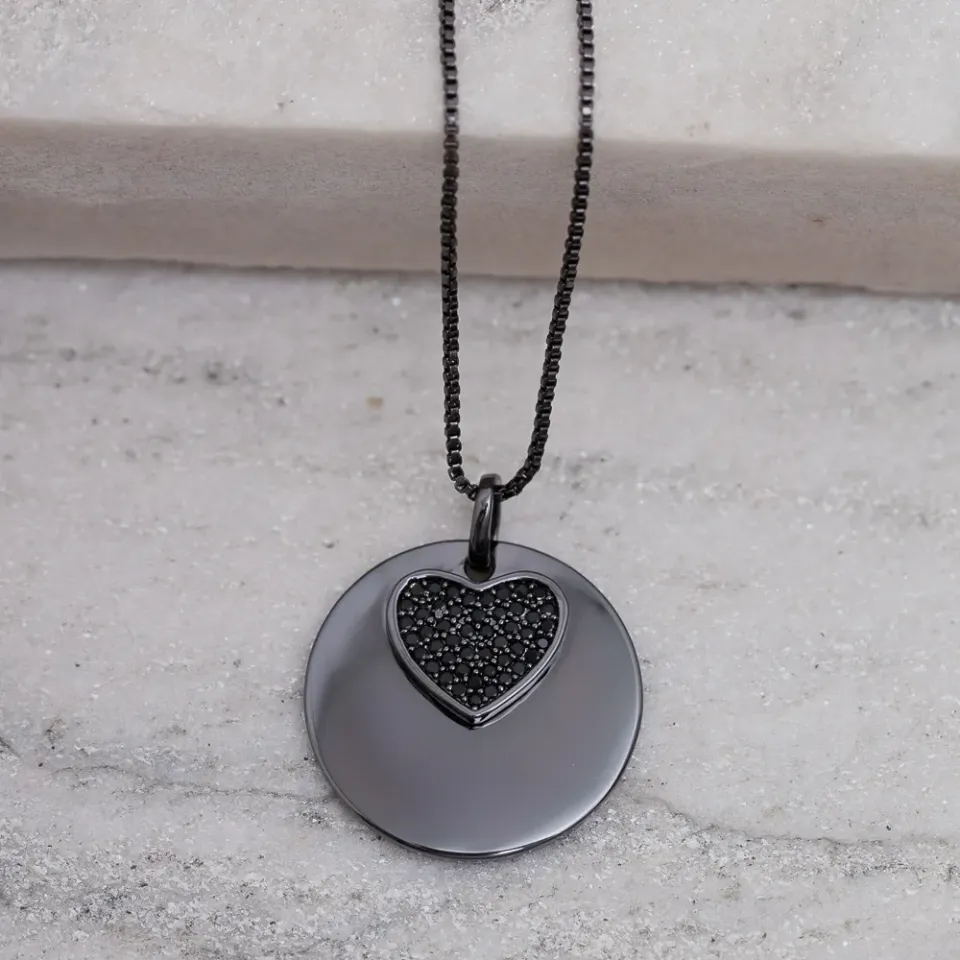 COLAR CORAÇÃO CRAVEJADO COM ZIRCÔNIAS NEGRAS BANHO RÓDIO NEGRO