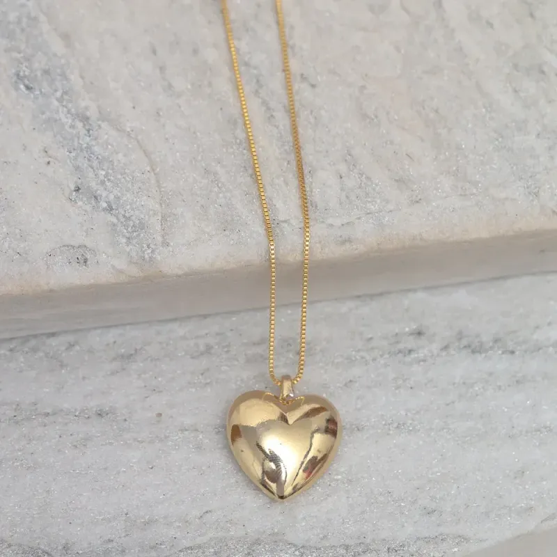 COLAR CORAÇÃO LISO ABAULADO BANHO OURO 18K