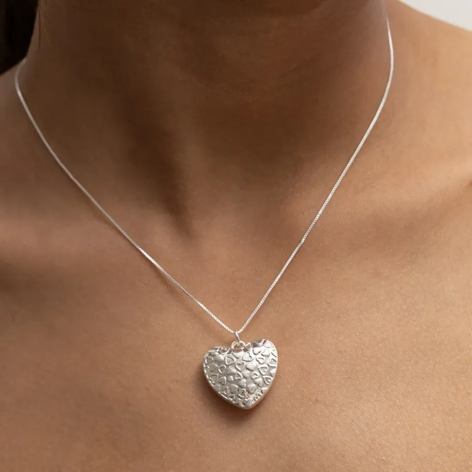 COLAR CORAÇÃO TRABALHADO BANHO PRATA