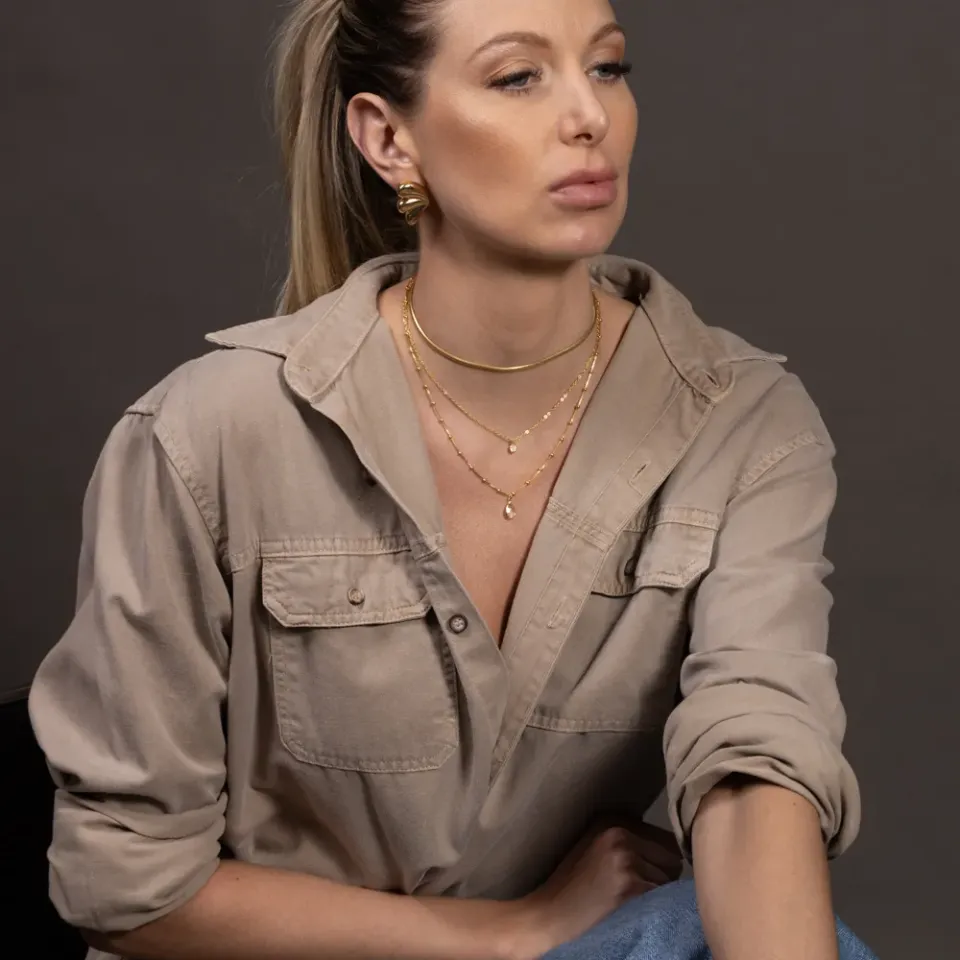 COLAR CORRENTE DUPLA COM PINGENTE GOTA CRISTAL BANHO OURO 18K