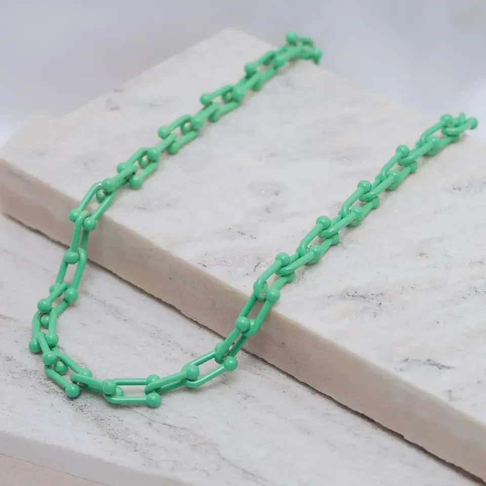 COLAR CORRENTE GROSSA ESMALTADO VERDE TIFFANY