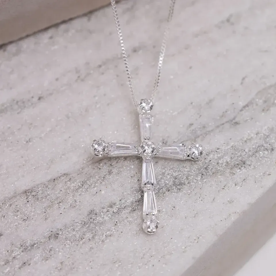 COLAR CRUZ COM ZIRCÔNIAS CRISTAIS BANHO PRATA
