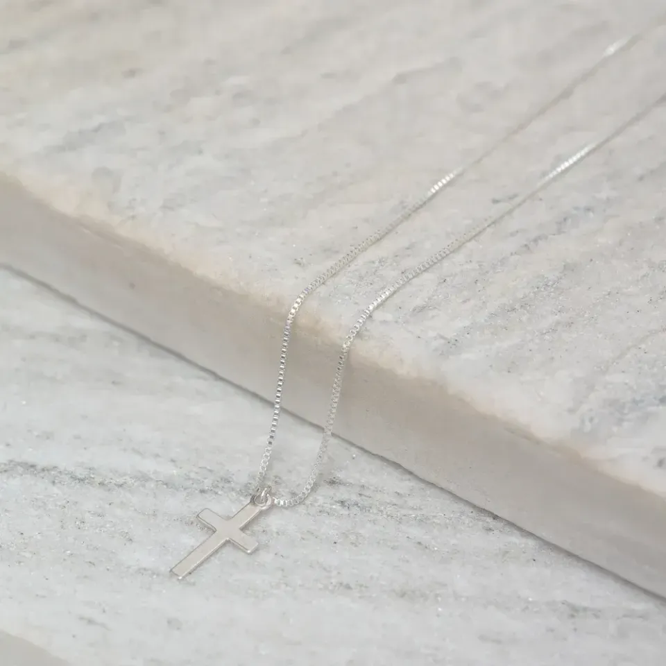 Colar Cruz M Lisa em banho Prata