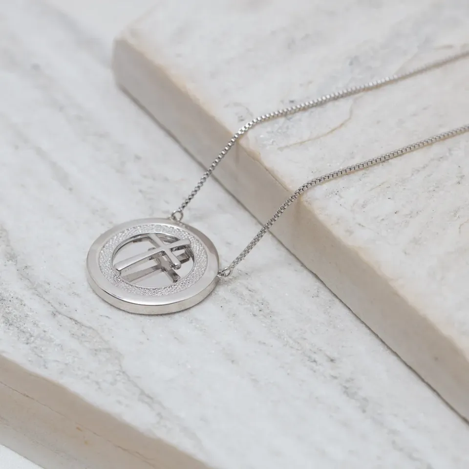 COLAR CRUZ MANDALA BANHO RÓDIO BRANCO