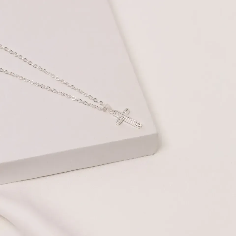 COLAR CRUZ PEQUENA COM ZIRCÔNIA BANHO PRATA