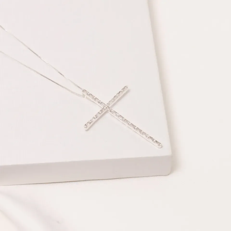 COLAR CRUZ ZIRCÔNIA CRISTAL BANHO PRATA