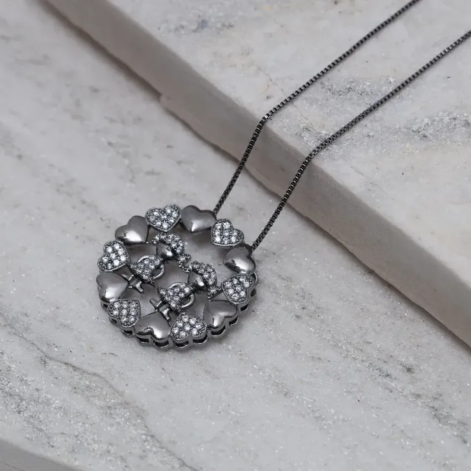 COLAR FILHOS DUAS MENINAS COM ZIRCÔNIAS BANHO RÓDIO NEGRO