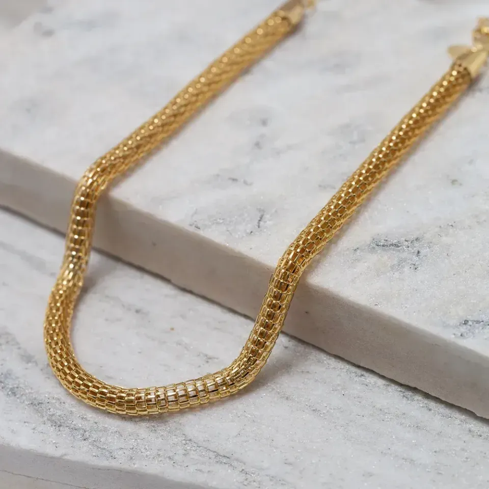 Colar Elo Oco Aramado Banho Ouro 18K