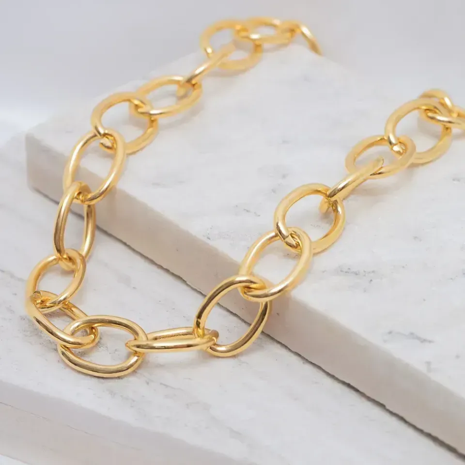 COLAR CORRENTE ELOS GRANDES BANHO OURO 18K