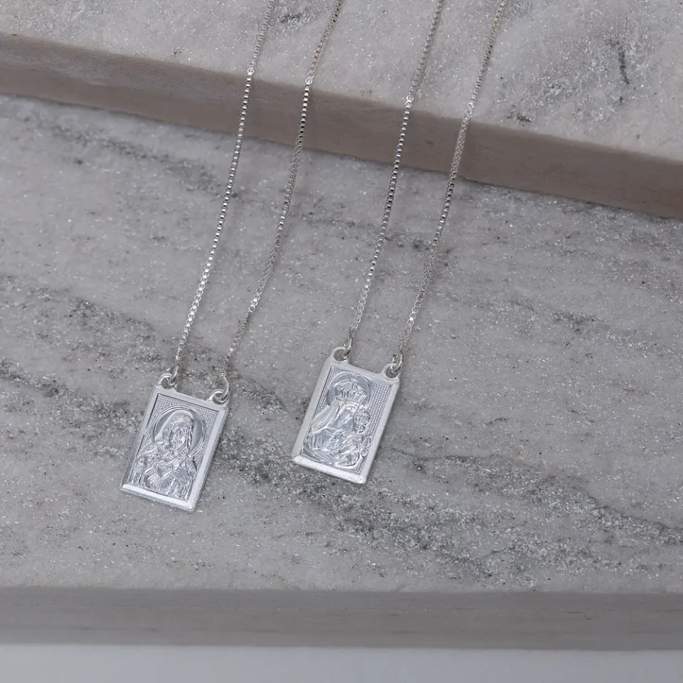 COLAR ESCAPULÁRIO G MARIA E SAGRADO CORAÇÃO BANHO PRATA