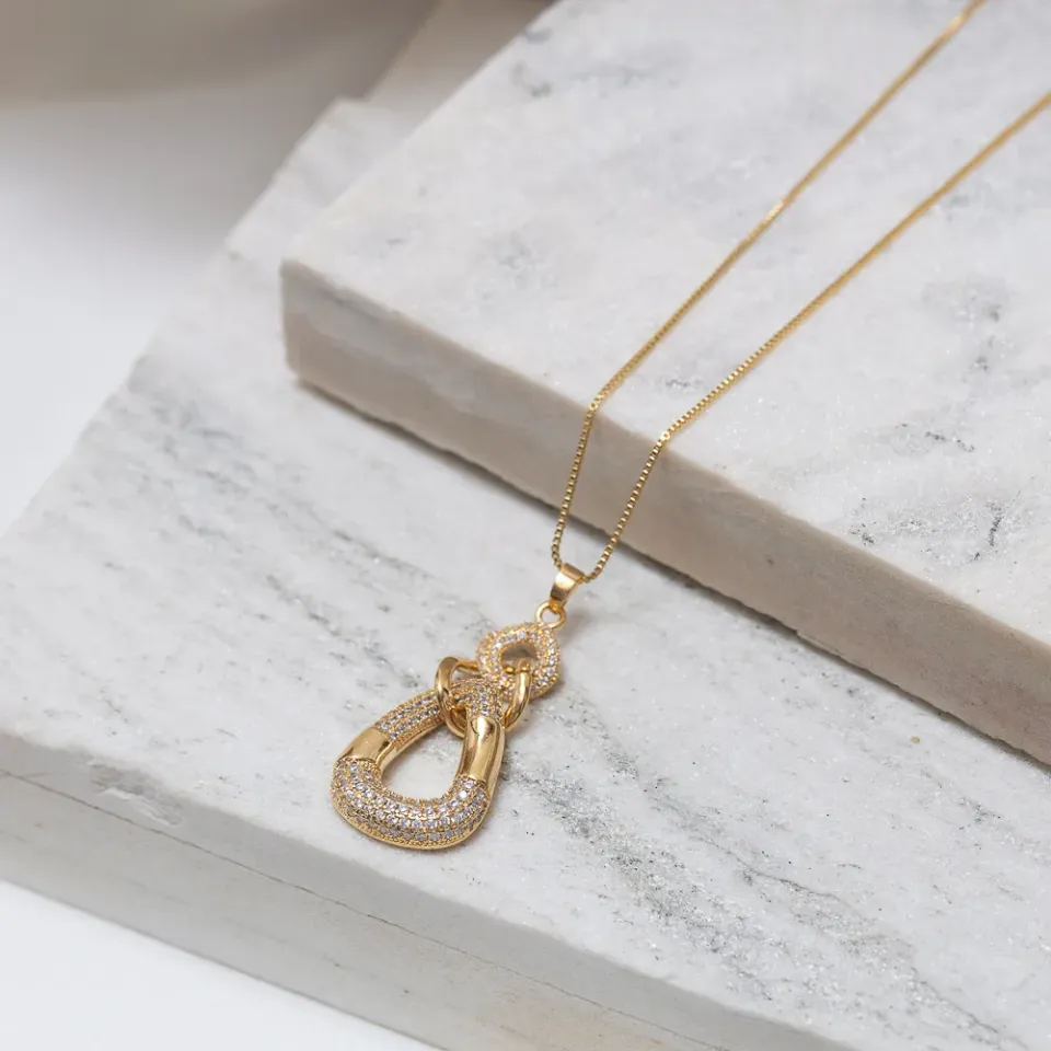 COLAR FESTA ELEGANTE COM ZIRCÔNIAS BANHO OURO 18K