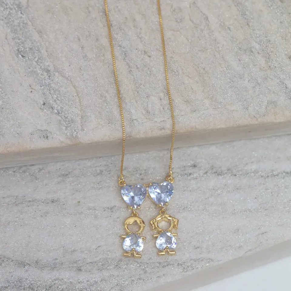 COLAR FILHOS CASAL CRISTAL BANHO OURO 18K
