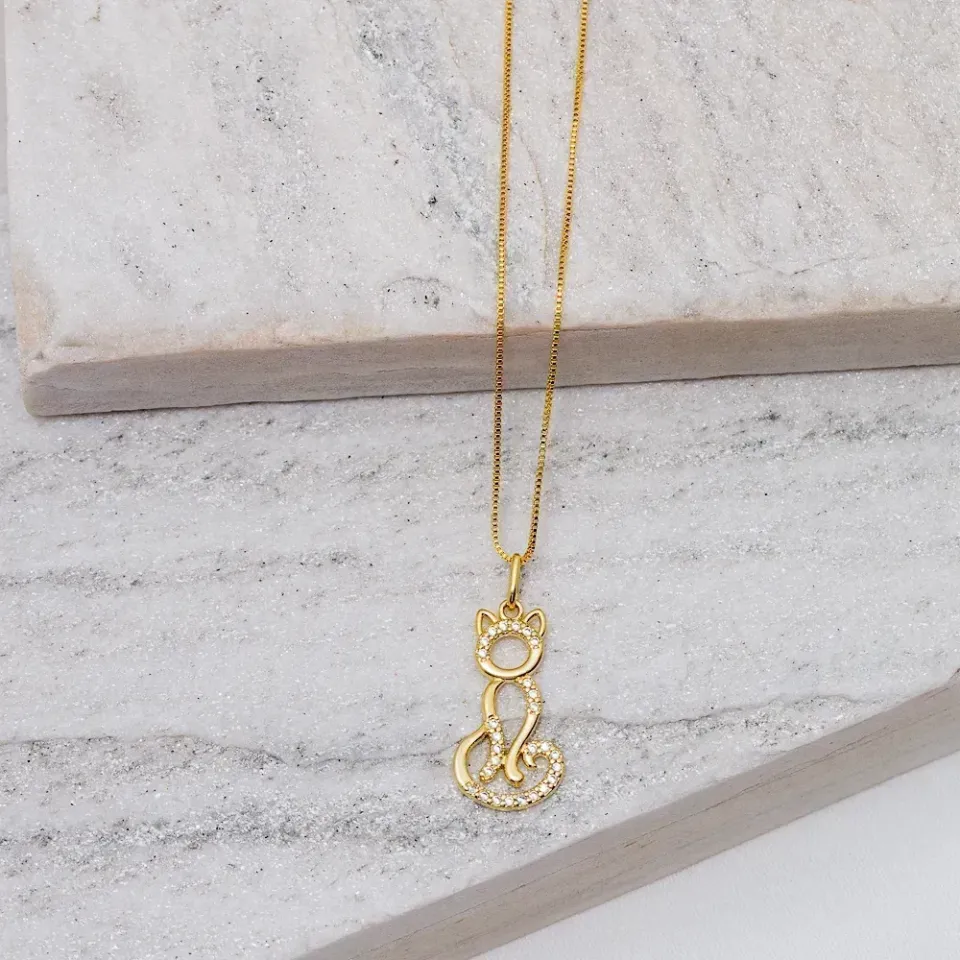 COLAR GATO CRAVEJADO COM ZIRCÔNIAS CRISTAIS BANHO OURO 18K