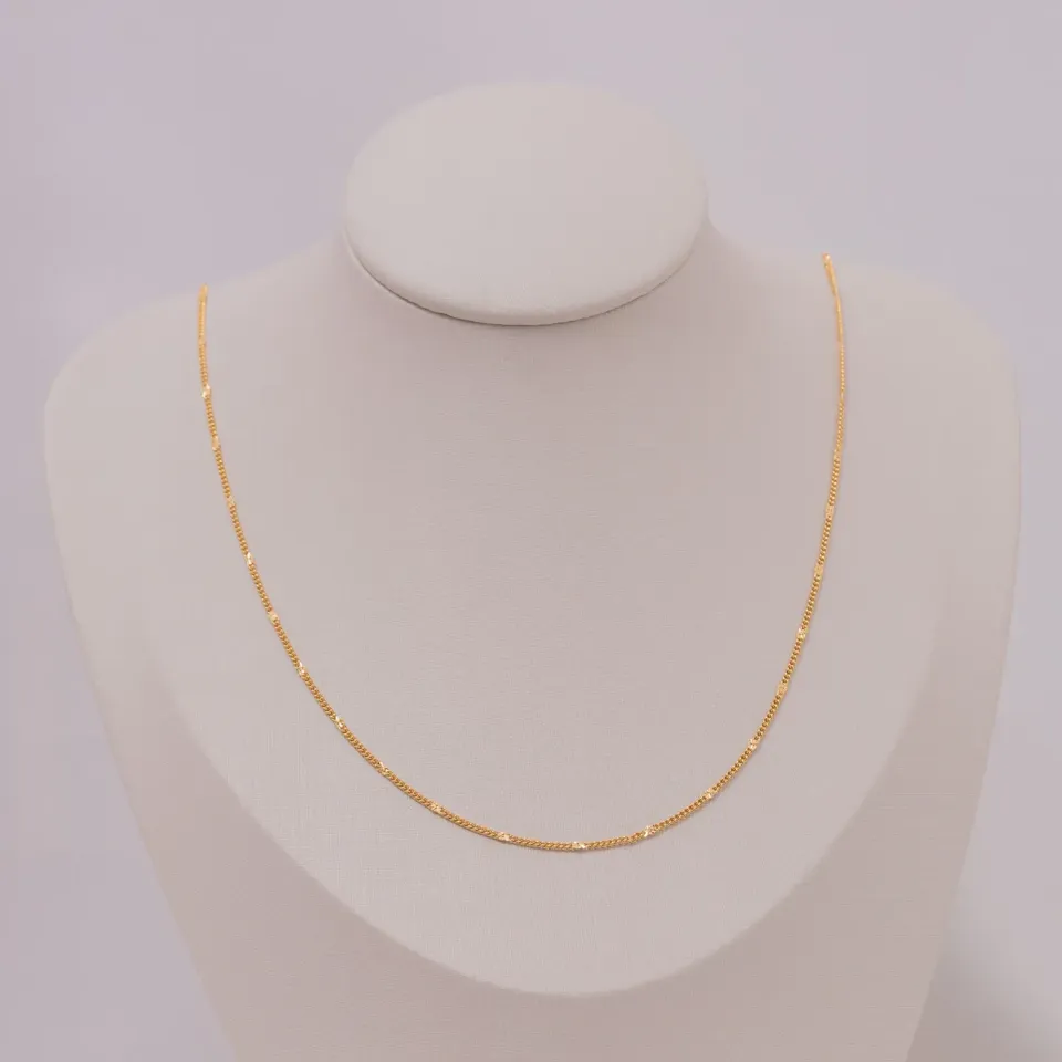 COLAR LONGO ELOS GRUMET E BOLINHAS DIAMANTADAS BANHO OURO 18K