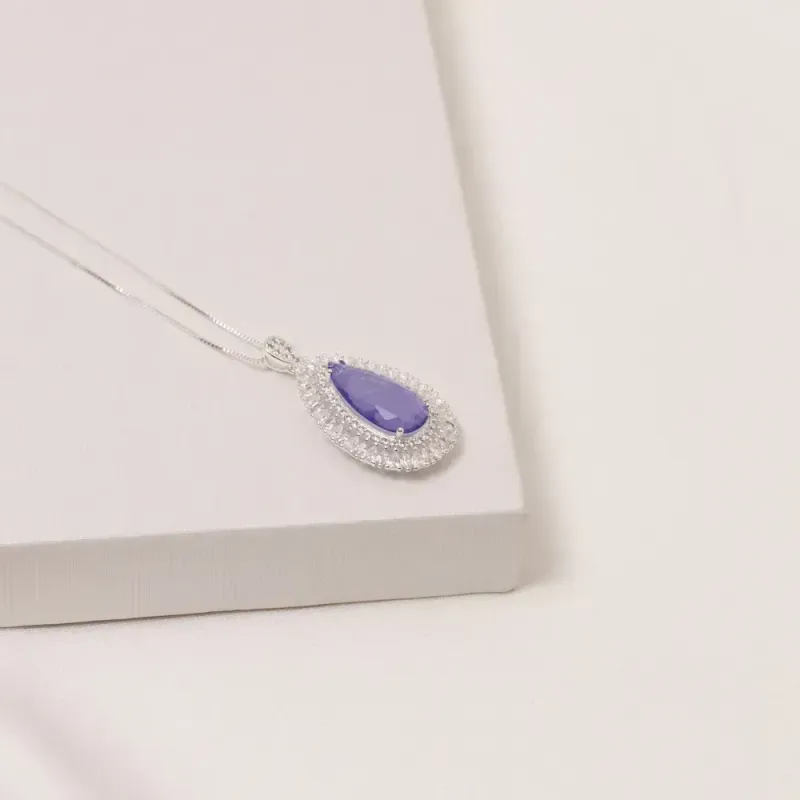 Colar Gota com Zircônias e Pedra Roxa M em banho Prata