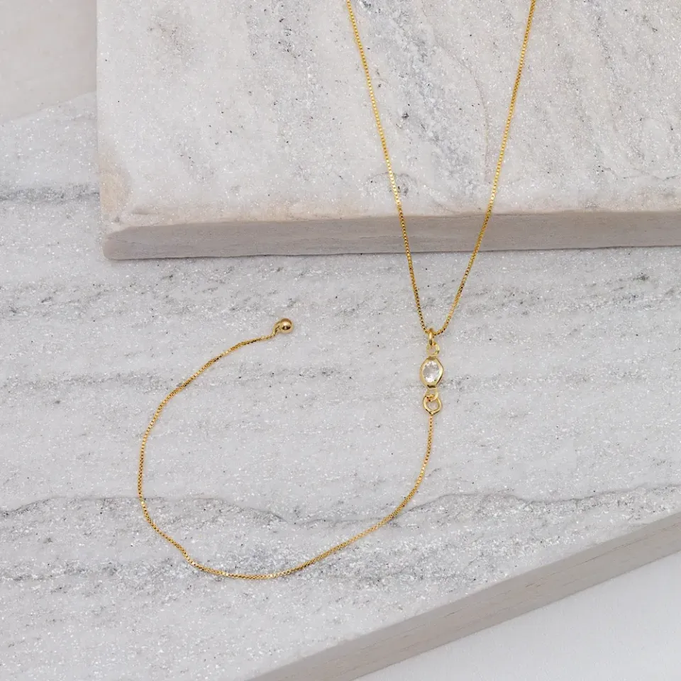COLAR PÊNDULO COM PEDRA ZIRCÔNIA CRISTAL BANHO OURO 18K