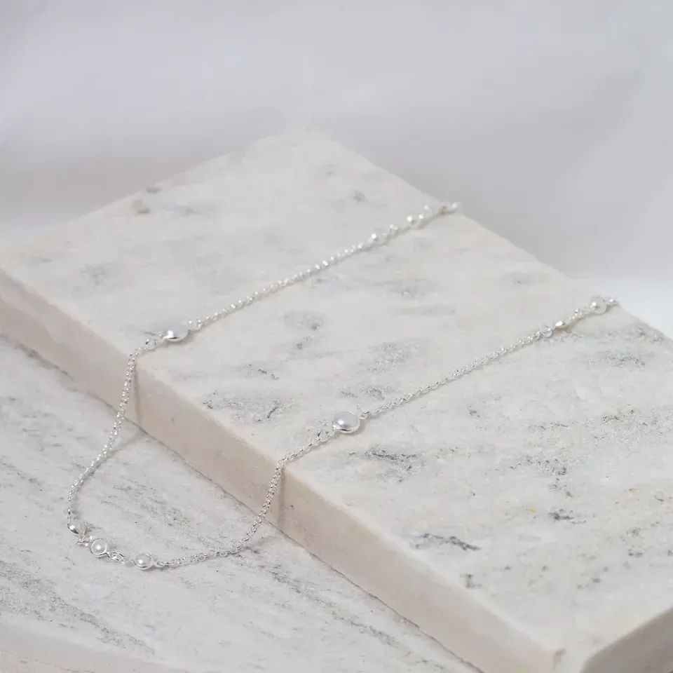 Colar Longo com Pérolas em banho Prata