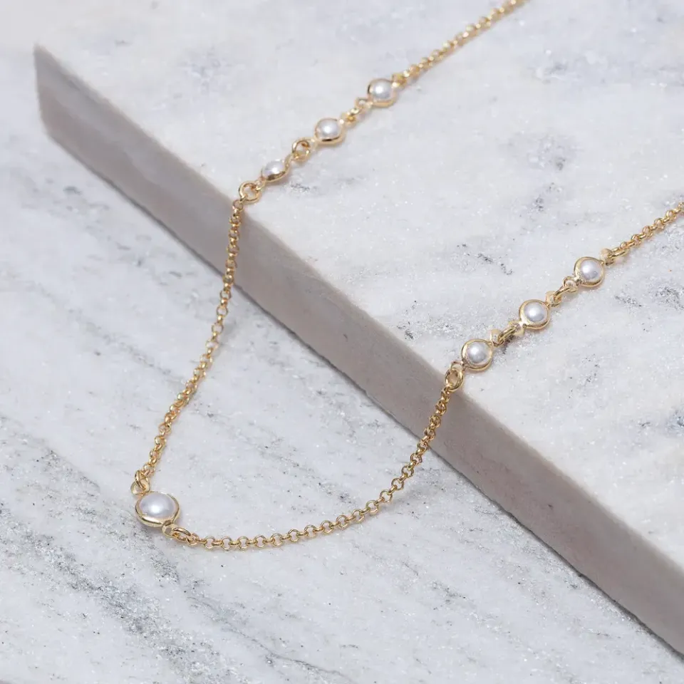 COLAR LONGO COM PÉROLAS BANHO OURO 18K