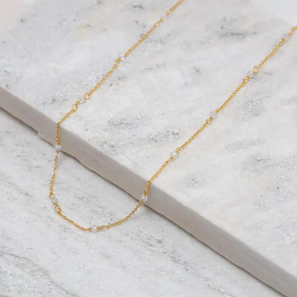 COLAR LONGO COM ZIRCÔNIAS CRISTAIS BANHO OURO 18K