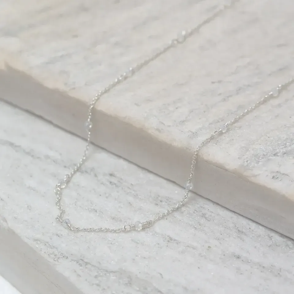 COLAR LONGO COM ZIRCÔNIAS CRISTAIS BANHO PRATA