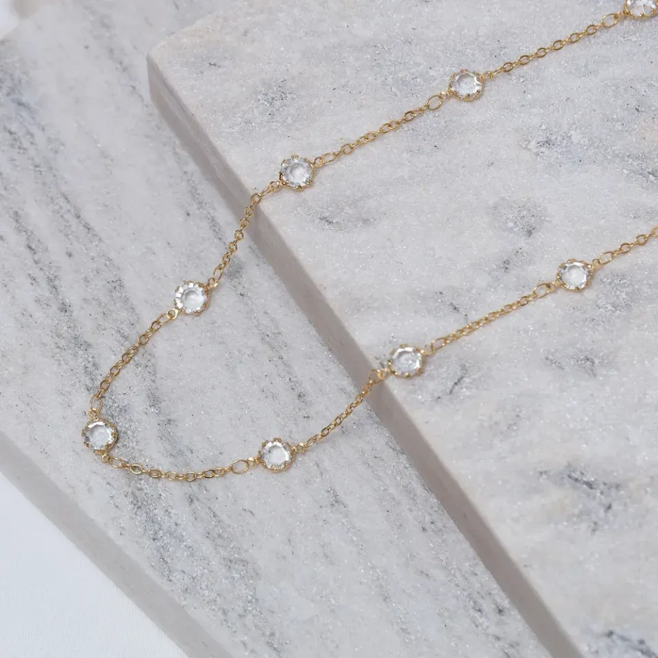 COLAR LONGO COM ZIRCÔNIAS CRISTAIS G BANHO OURO 18K