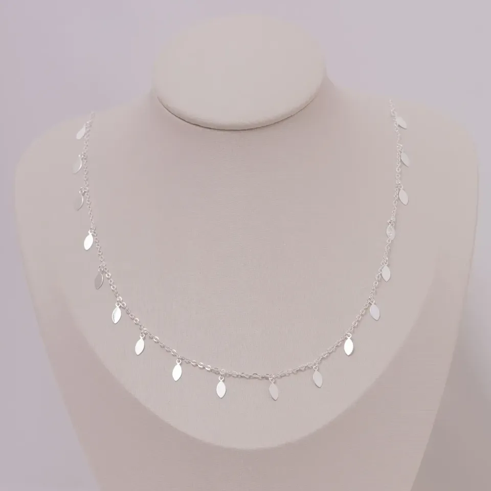 COLAR LONGO FOLHA BANHO RÓDIO BRANCO