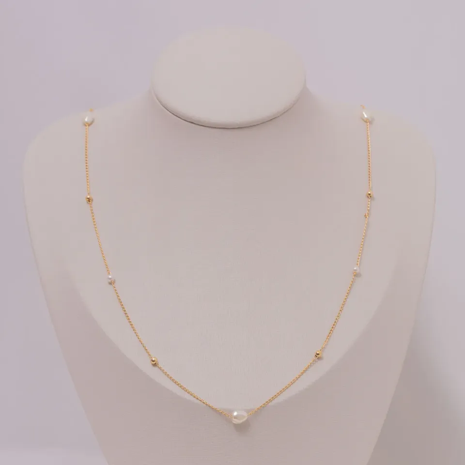COLAR LONGO PÉROLAS BANHO OURO 18K