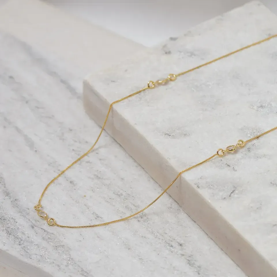 COLAR LONGO COM ZIRCÔNIAS CRISTAIS BANHO OURO 18K