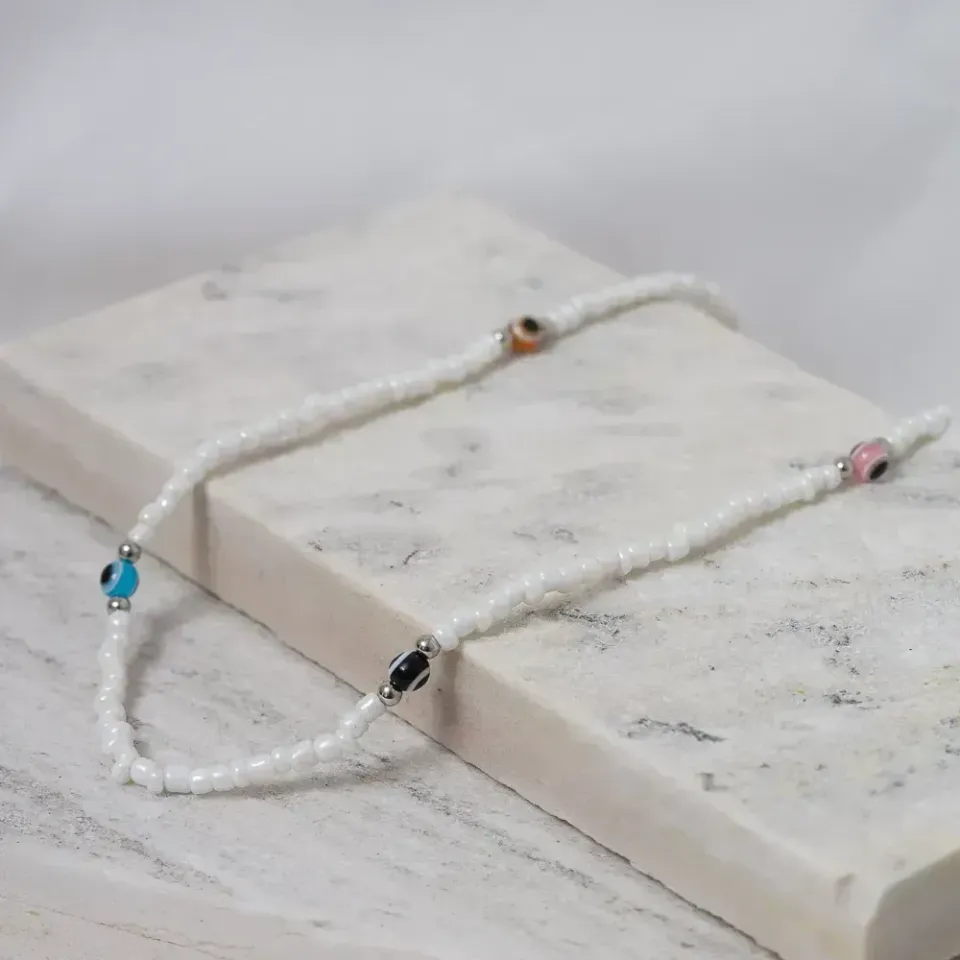 COLAR LONGO PÉROLA COM DETALHE DE OLHO GREGO