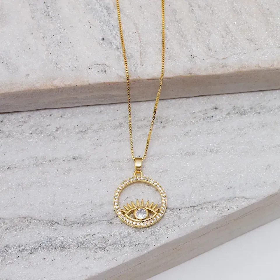 COLAR OLHO GREGO COM ZIRCÔNIAS CRISTAIS BANHO OURO 18K