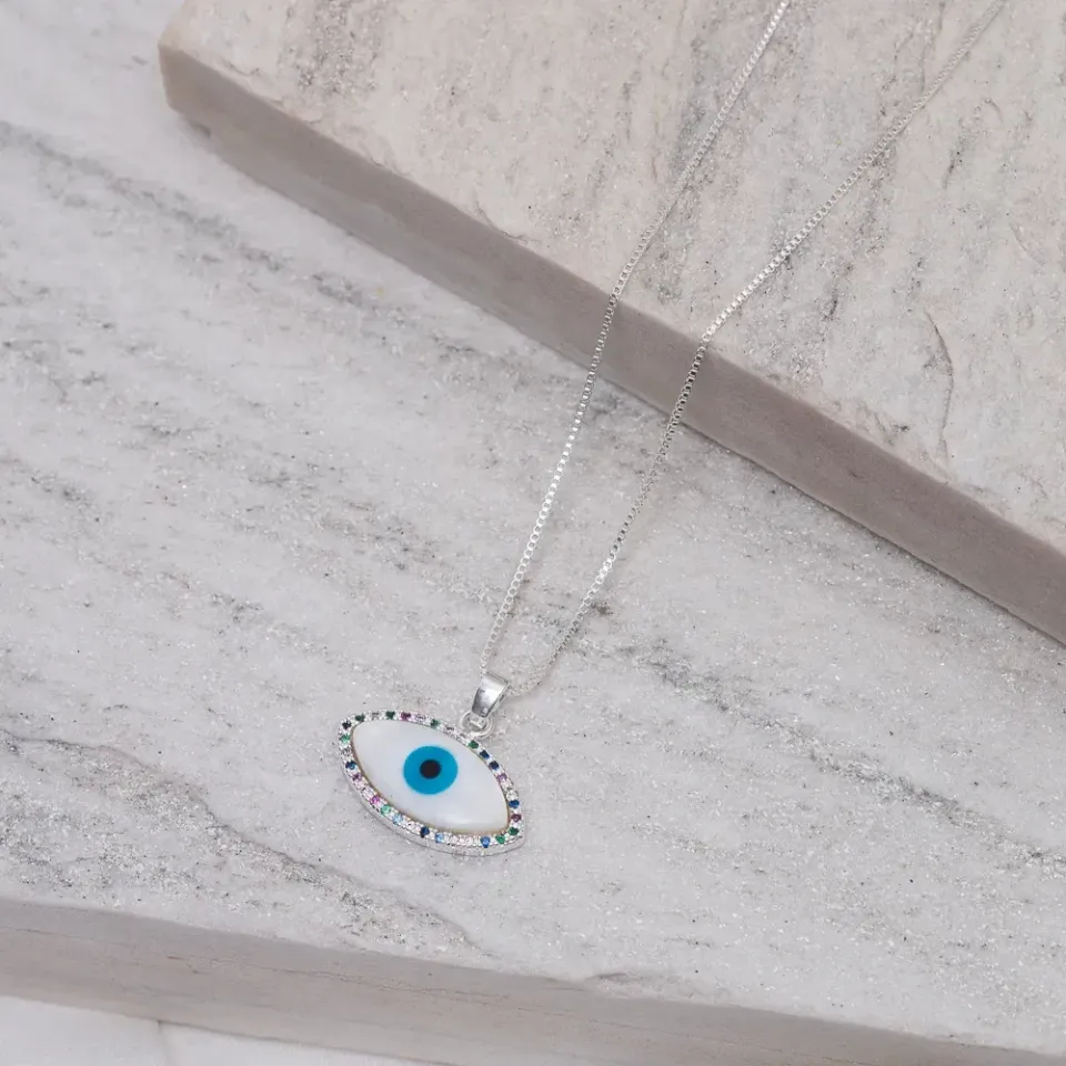 COLAR OLHO GREGO COM ZIRCÔNIA BANHO PRATA