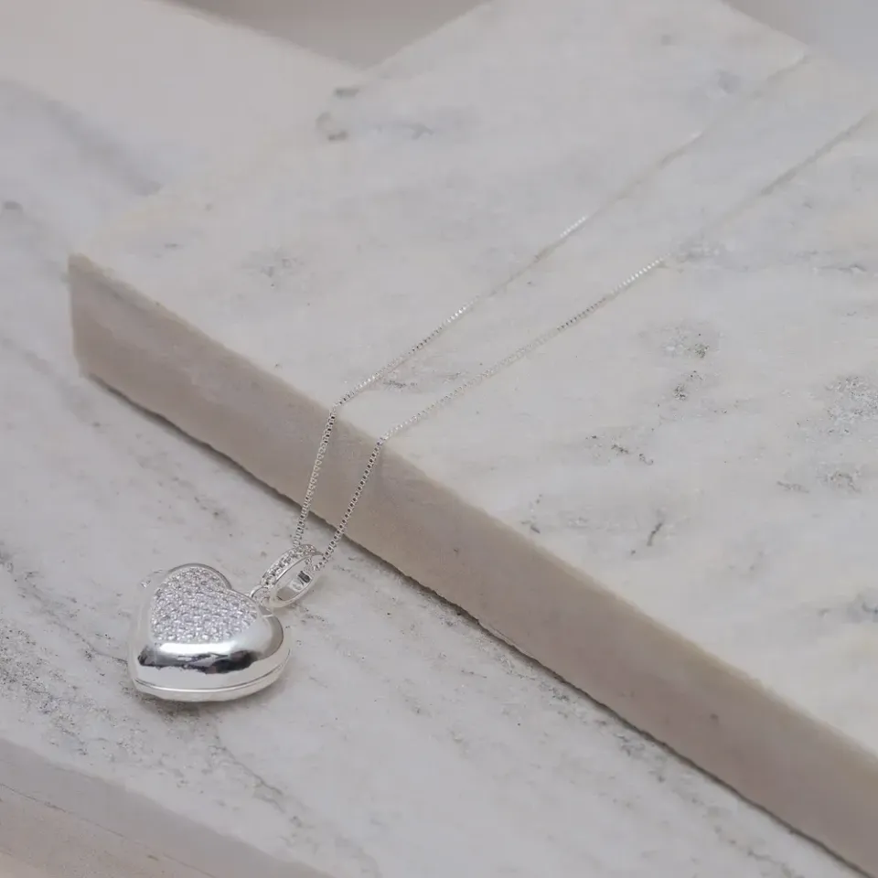 COLAR PERFUMEIRA CORAÇÃOCRAVEJADO COM ZIRCÔNIAS CRISTAIS BANHO PRATA
