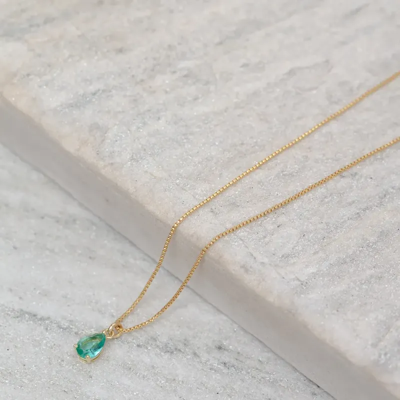 COLAR PONTO DE LUZ GOTINHA VERDE TIFFANY BANHO OURO 18K