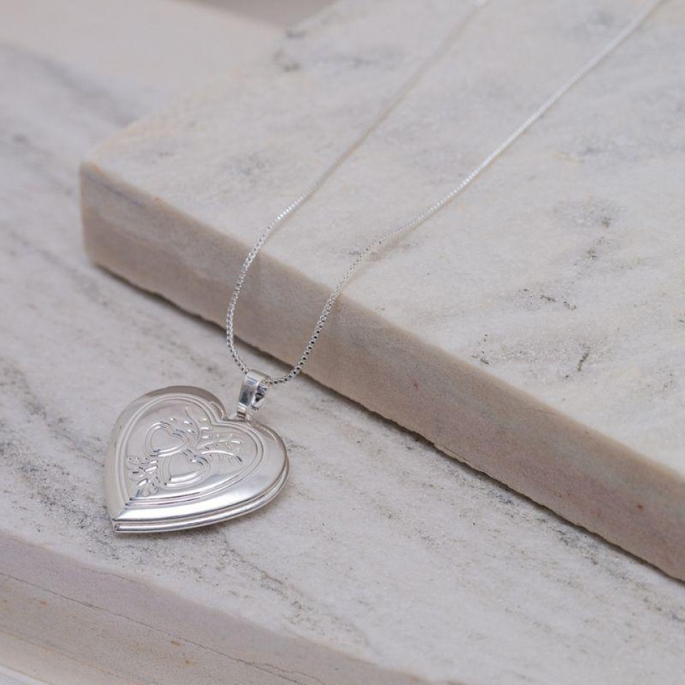 COLAR RELICÁRIO CORAÇÃO TRABALHADO BANHO PRATA