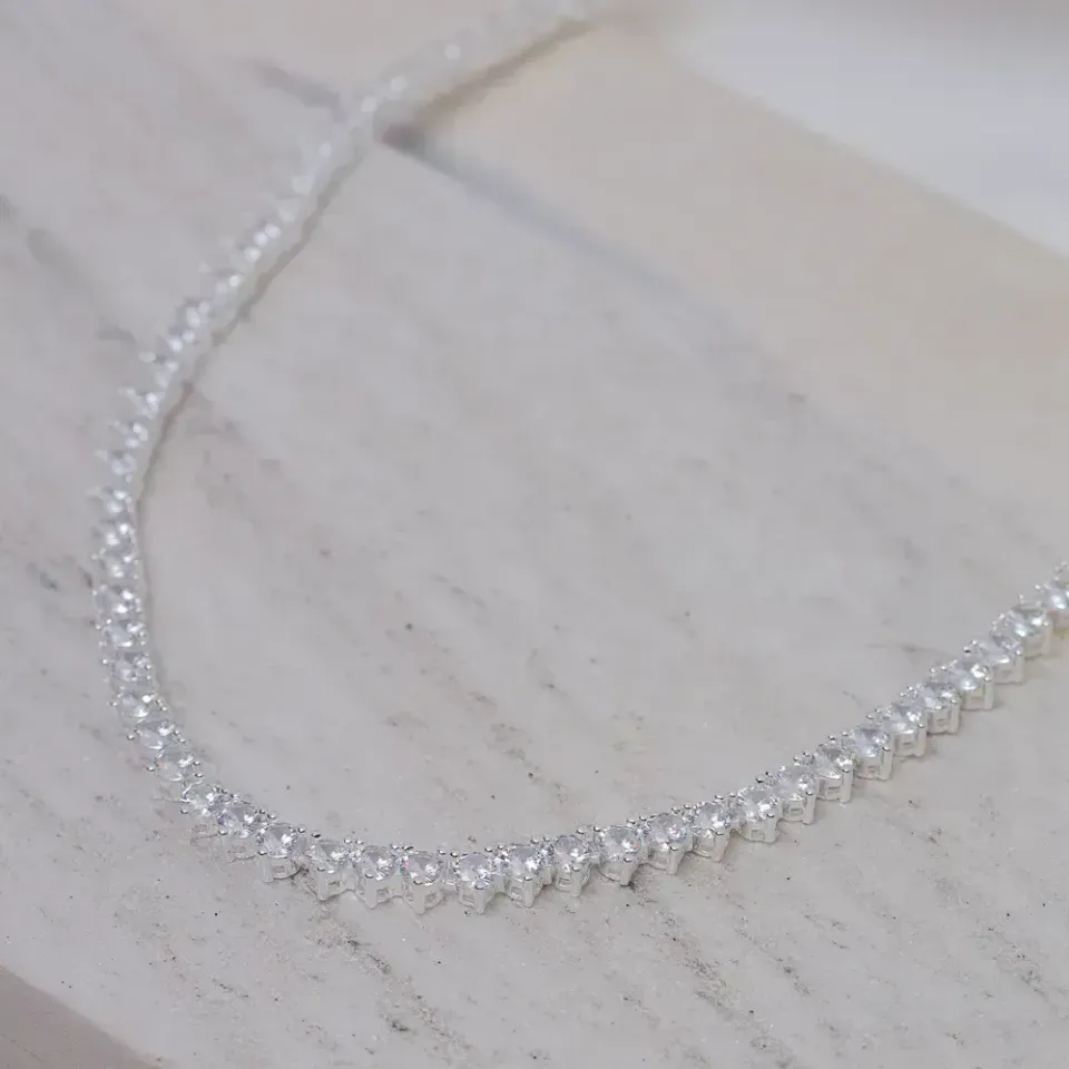COLAR RIVIERA CRAVEJADO COM PEDRAS REDONDAS CRISTAIS BANHO PRATA