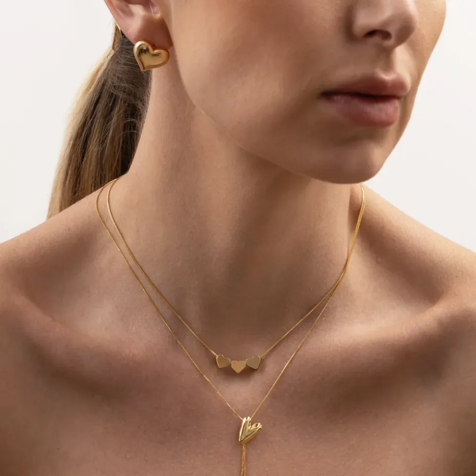 COLAR TRÊS CORAÇÕES LISOS BANHO OURO 18K