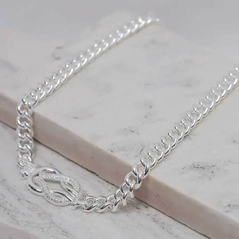 COLAR NÓ LUXO GROSSO CRAVEJADO COM ZIRCÔNIAS CRISTAIS BANHO PRATA
