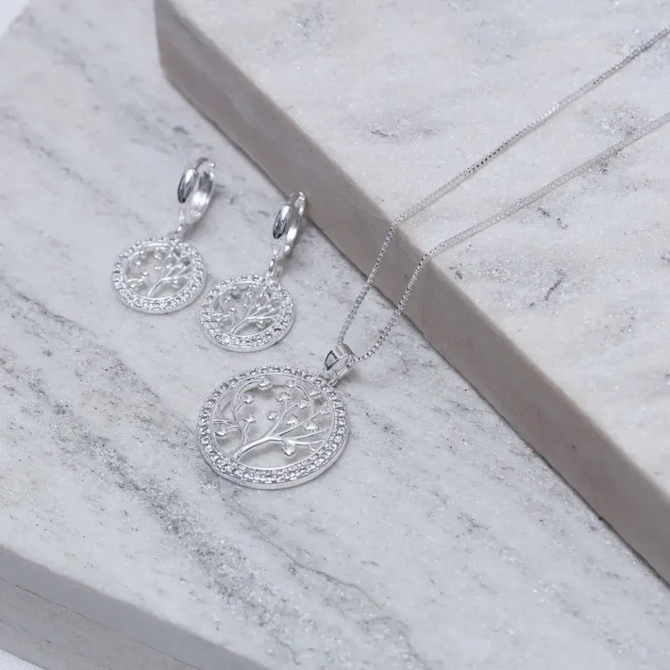 Conjunto Árvore da Vida em banho Prata