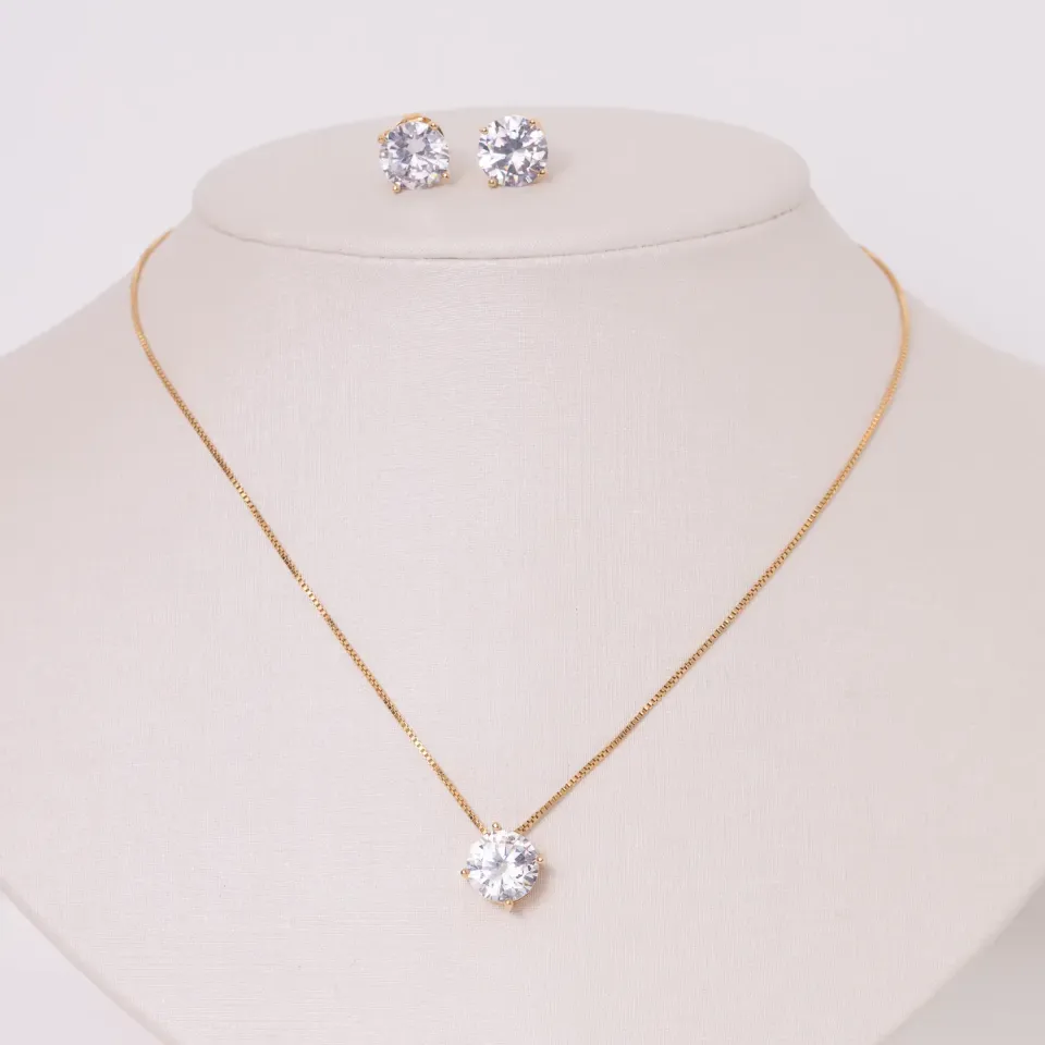 CONJUNTO PONTO DE LUZ COM PEDRA ZIRCÔNIA CRISTAL BANHO OURO 18K