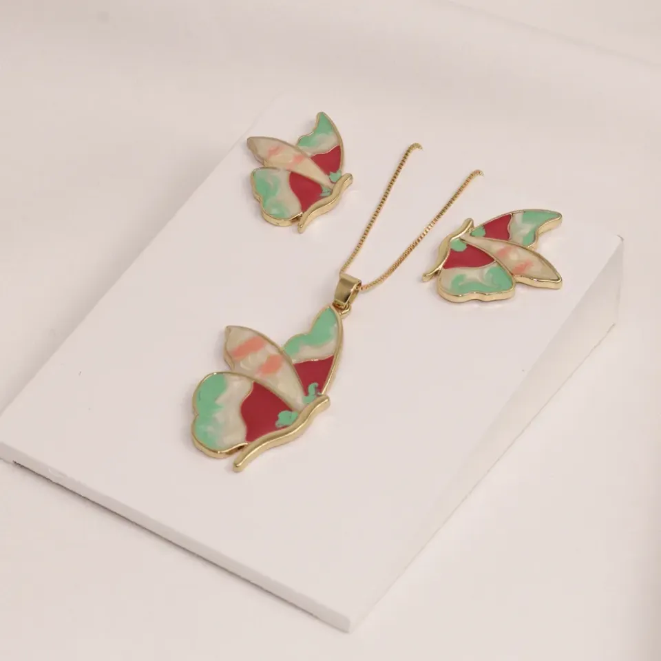 CONJUNTO BORBOLETA RESINA G BANHO OURO 18K