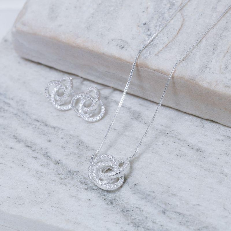 CONJUNTO CÍRCULO TRIPLO CRAVEJADO BANHO PRATA