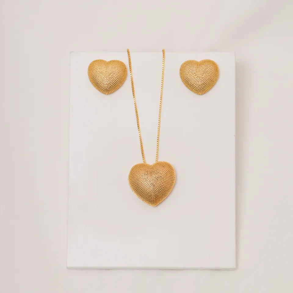 CONJUNTO CORAÇÃO BANHO OURO 18K